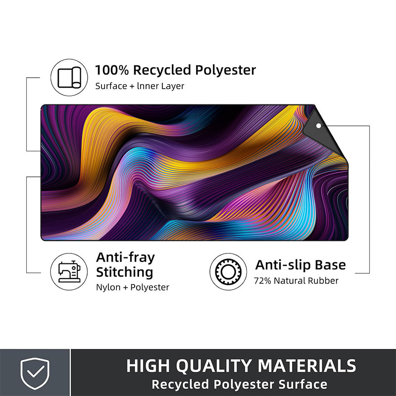 Advantages: This mouse pad is designed specifically for you who seek the ultimate experience. It features high-quality fabric with a smooth touch, providing a seamless and unobstructed operation feel for every click and swipe. The oversized design covers the desktop more comprehensively, meeting your space needs whether for work or gaming, allowing your mouse to move freely.